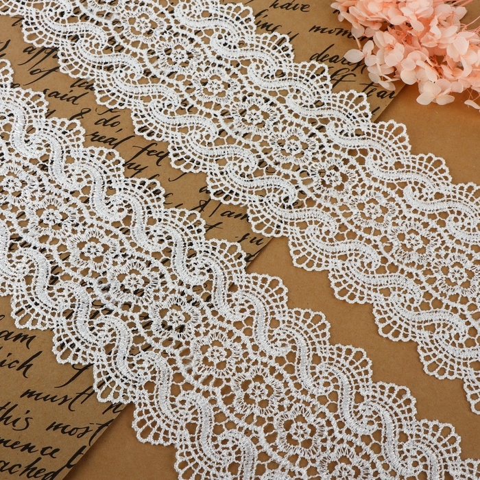 Кружево гипюровое, 35 мм × 9 ± 0,5 м, цвет белый