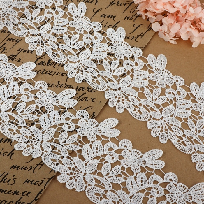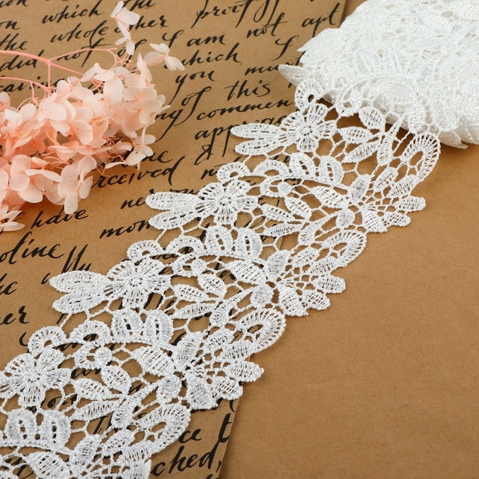 Кружево гипюровое, 85 мм × 6,8 ± 0,5 м, цвет белый
