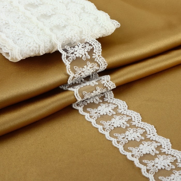 Кружево шитьё, 70 мм × 13 ± 1 м, цвет белый