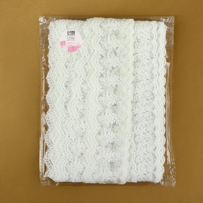 Кружево гипюровое, 45 мм × 9 ± 0,5 м, цвет белый