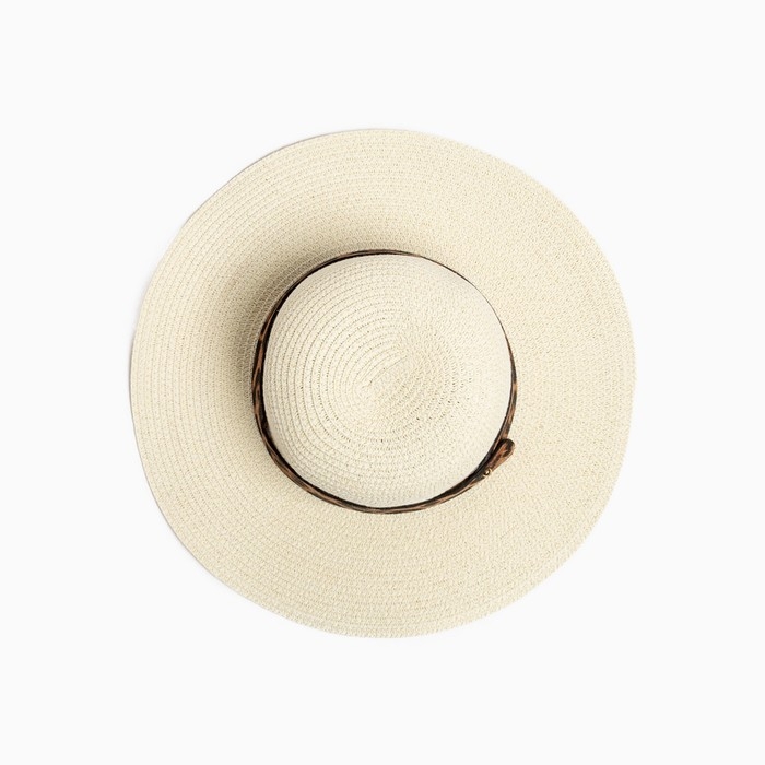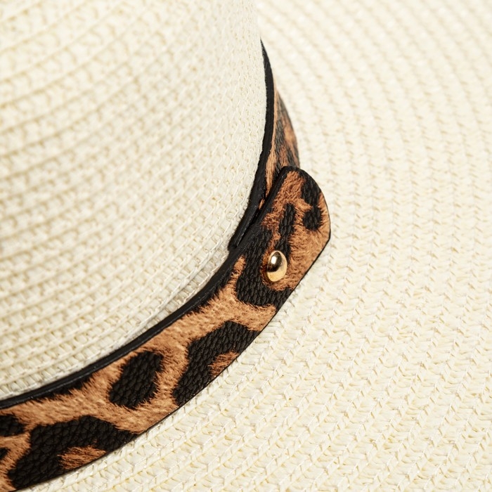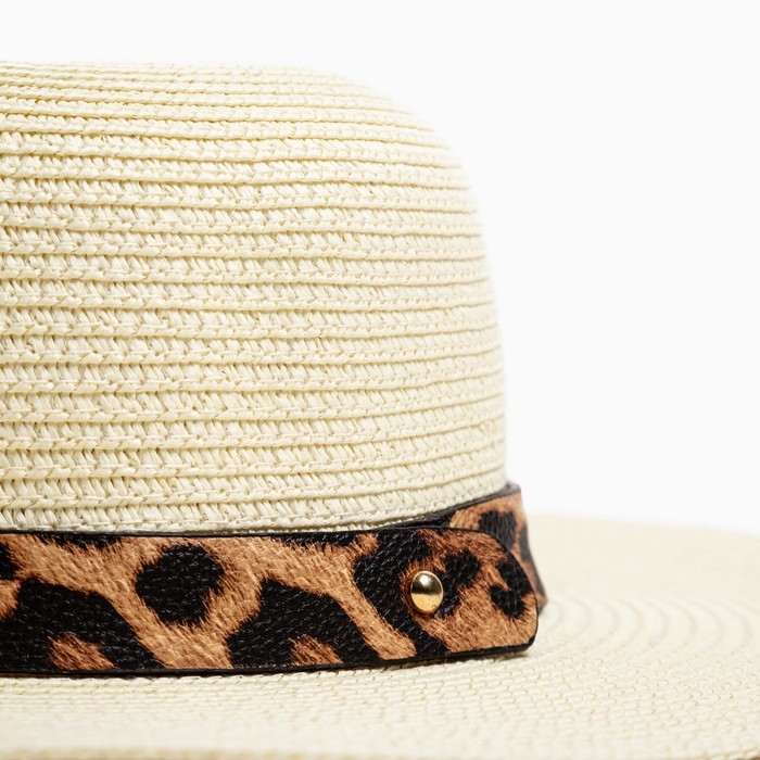 Шляпа женская с леопардовым ремешком MINAKU цвет молочный, р-р 58