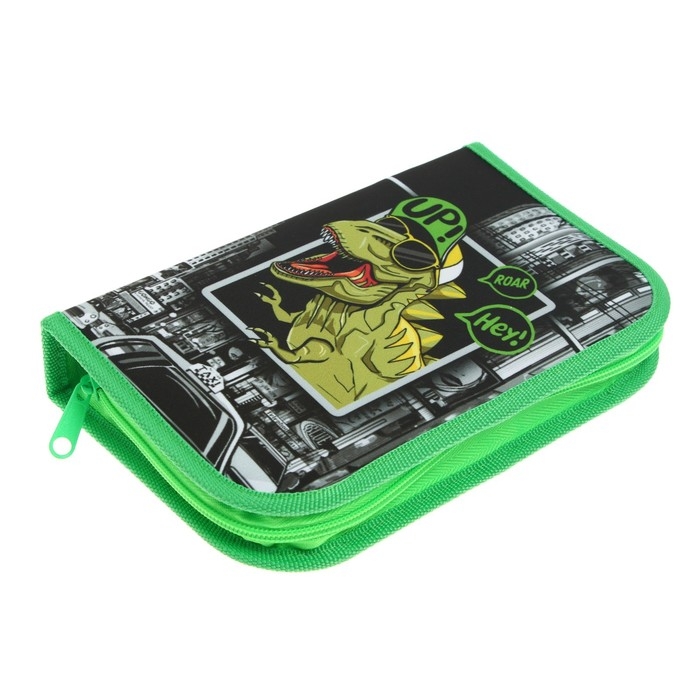 Пенал 1 секция, 130 х 210 х 40 мм, 2 откидные планки, тканевый, Calligrata TOP, Content "Дино"