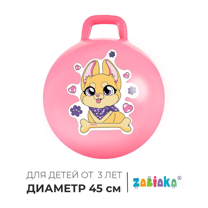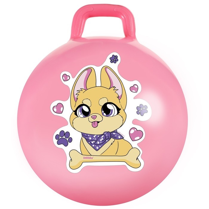Мяч-прыгун с ручкой ZABIAKA «Корги», d=45 см, 380 г, цвет розовый