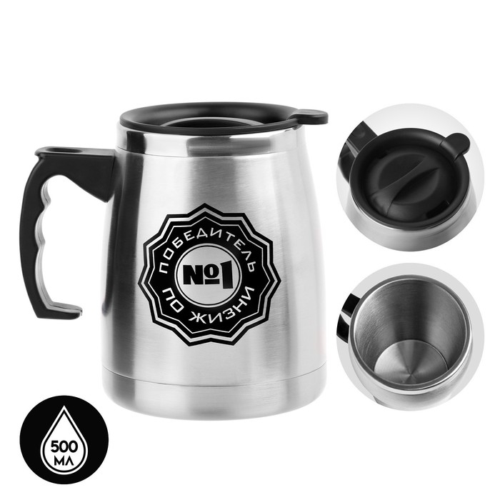 Термокружка, 500 мл, Camping "Победитель по жизни", сохраняет тепло 2 ч, 13 х 13.5 см