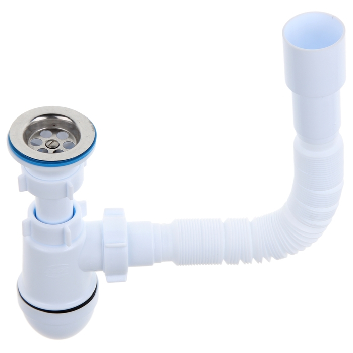 Сифон для мойки "АНИ Пласт" C0115, 1 1/2"х40 мм, нерж решетка d=70 мм, с гофрой 40x40/50 мм