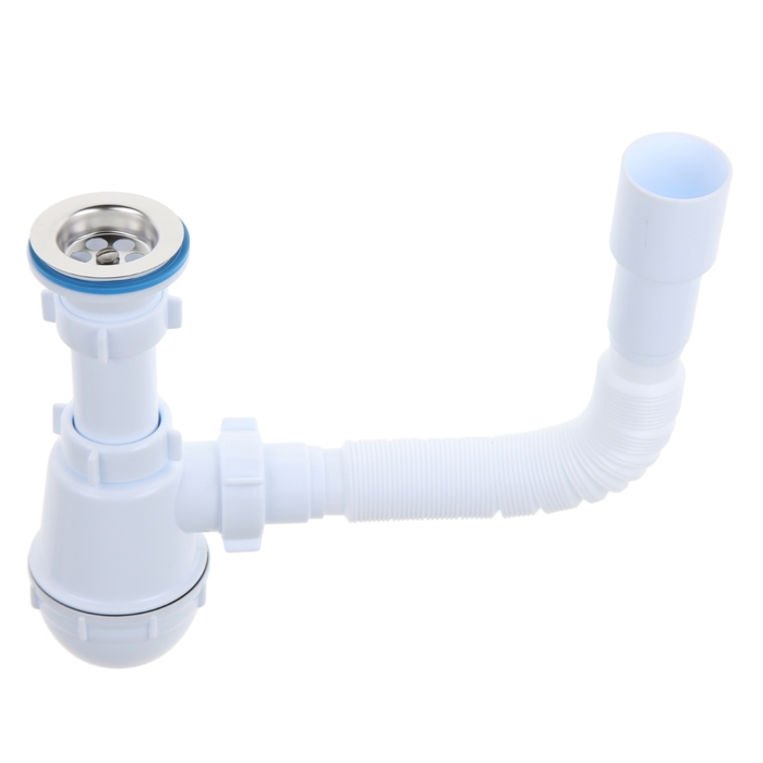 Сифон для мойки "АНИ Пласт" A0115, 1 1/2"х40 мм, нерж решетка d=70 мм, с гофрой 40x40/50 мм
