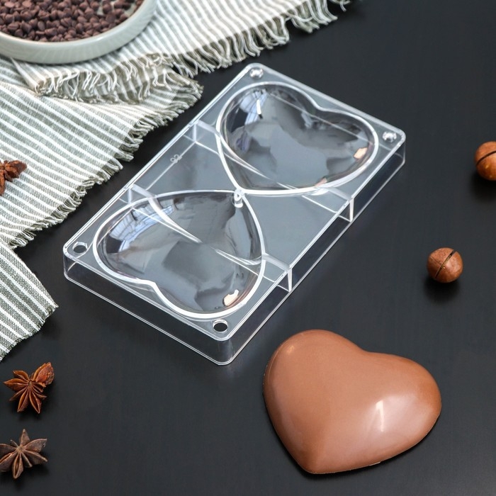 Форма для шоколада KONFINETTA «Любовь», 20×12×2,5 см, 2 ячейки 10×9×1,5 см, цвет прозрачный