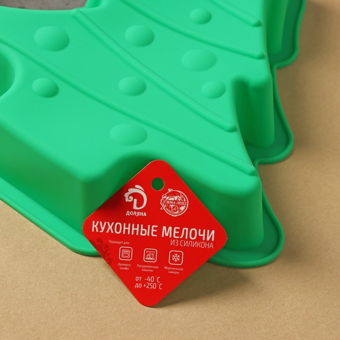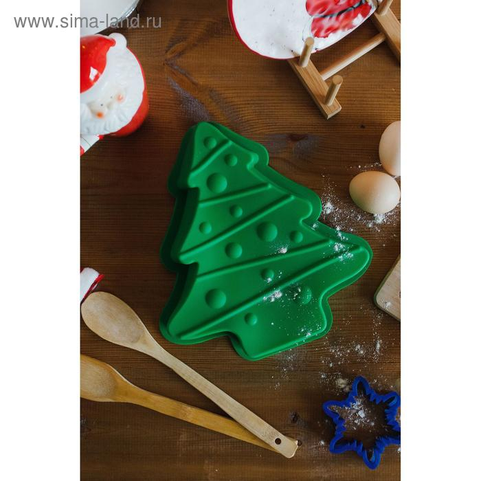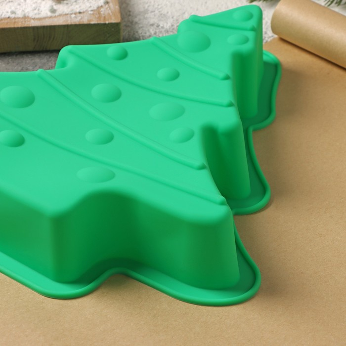 Форма для выпечки Доляна «Ёлочка с гирляндой», силикон, 27×25 см, цвет зелёный