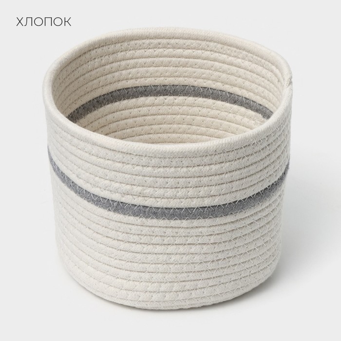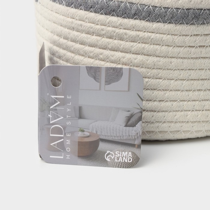 Корзина для хранения плетёная ручной работы LaDо́m «Дориан», хлопок, 18×18×15 см, цвет бело-серый