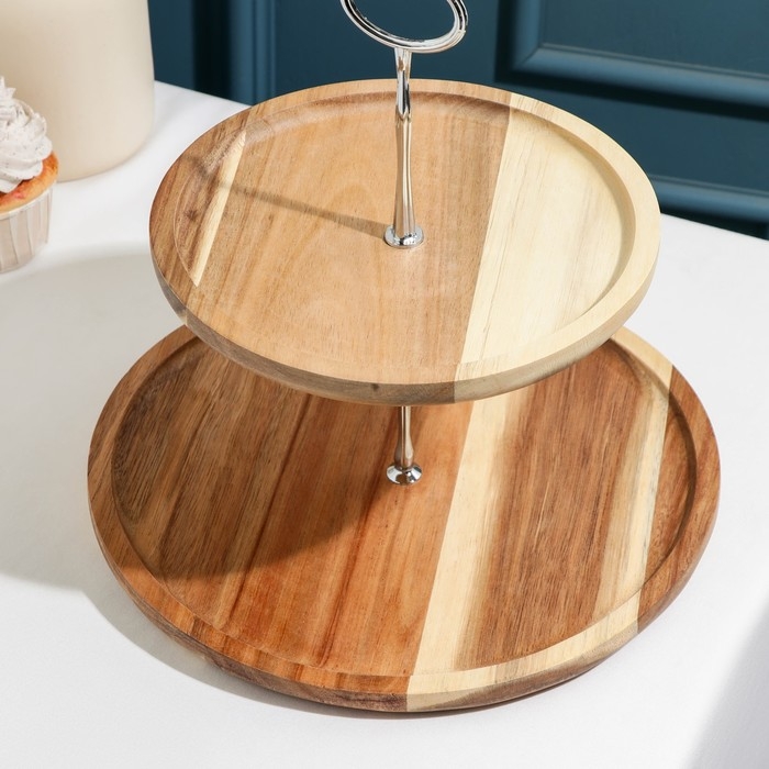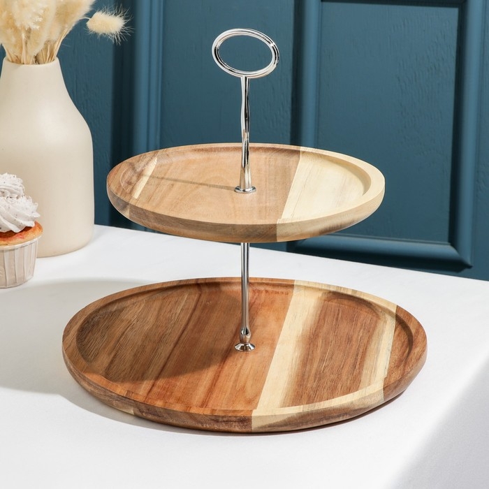 Блюдо для подачи «Тропики», 2 яруса, d=26 см, d=21 см, акация