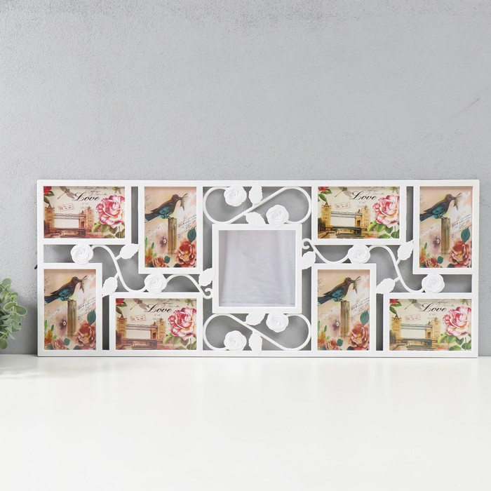 Фоторамка на 8 фото 10х15 см "Розы" белая 65,5х31 см