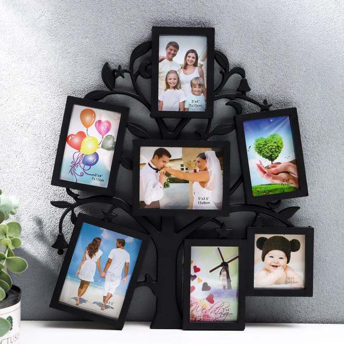 Фоторамка на 7 фото 7х7 см, 7х10 см, 8х10 см "Дерево желаний" чёрная 36х31 см