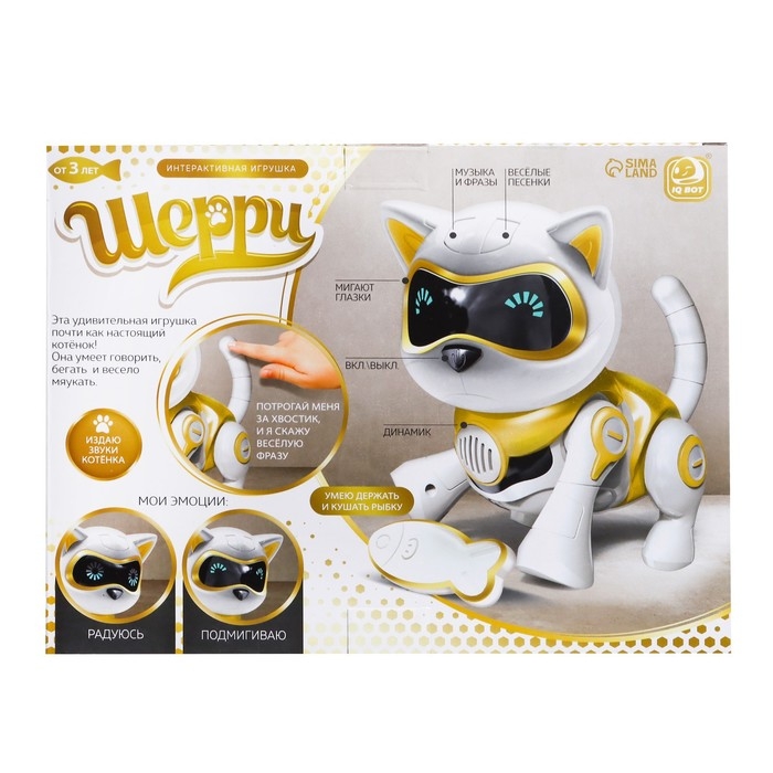 Робот кот «Шерри» IQ BOT, интерактивный: сенсорный, свет, звук, музыкальный, танцующий, на аккумуляторе, на русском языке, золотой