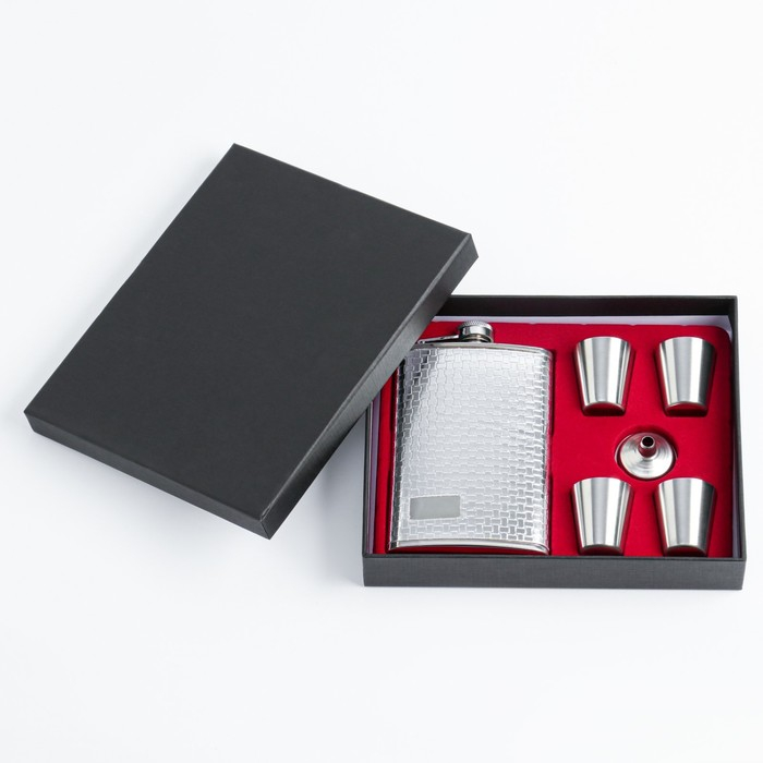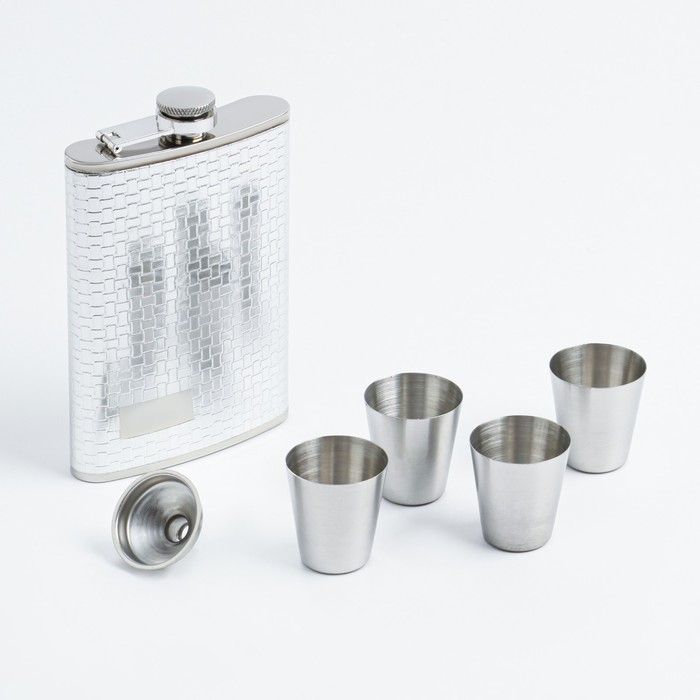Подарочный набор 6 в 1 "Клетка": фляжка 270 мл + 4 рюмки, воронка
