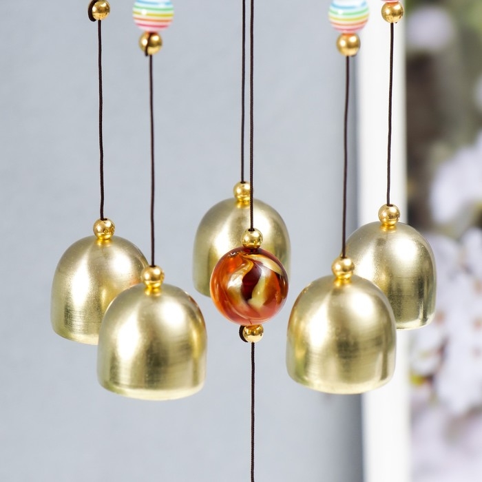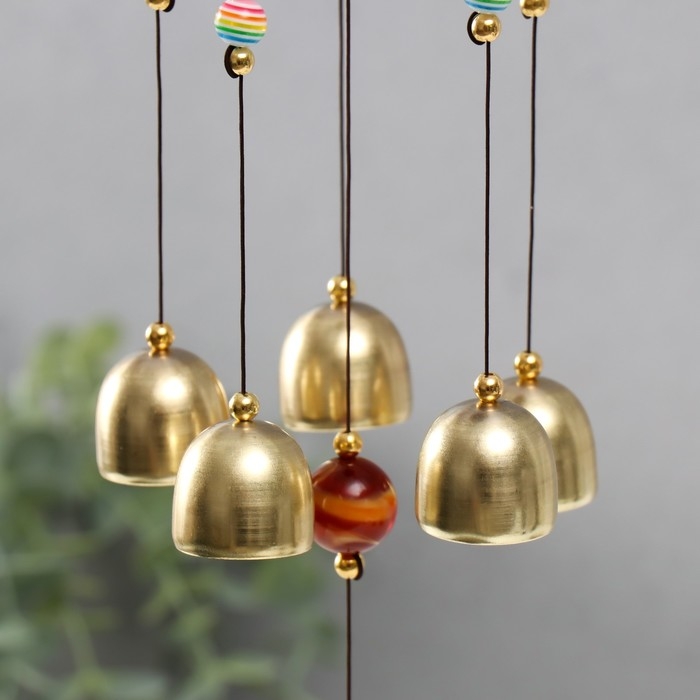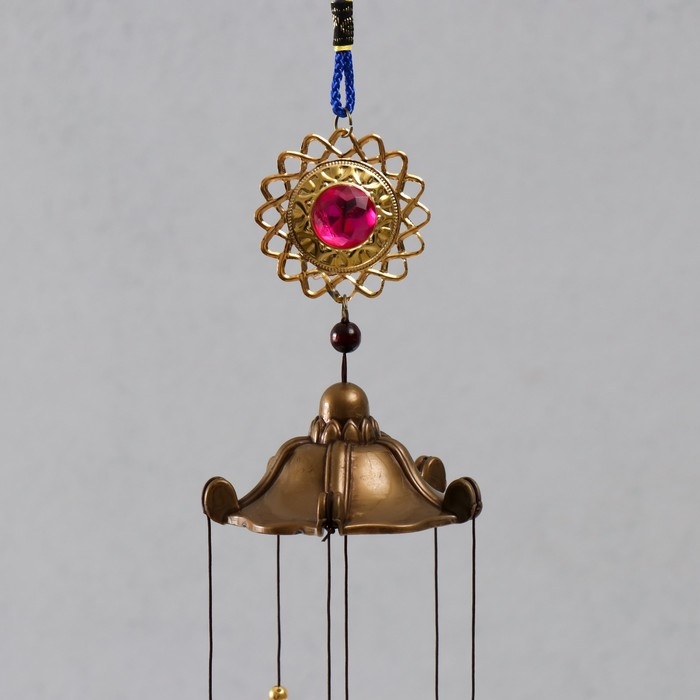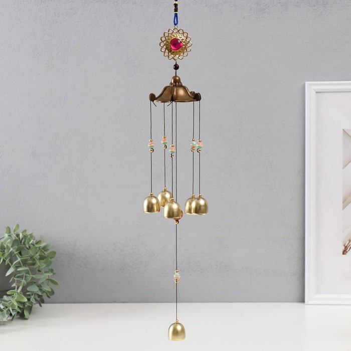 Музыка ветра металл "Ганеша в золотом цветке" 5 колокольчиков 56х8 см