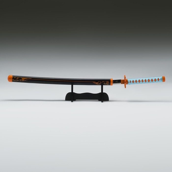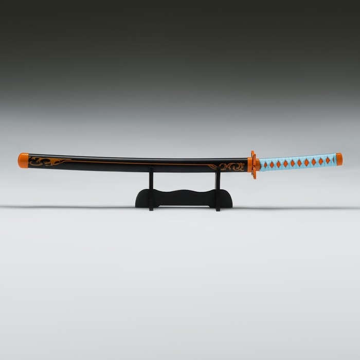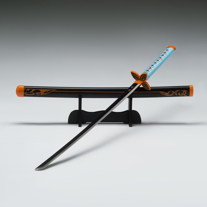 Сувенирное оружие "Катана Нобу" 75 см, клинок 48 см, рукоять голубая, на подставке