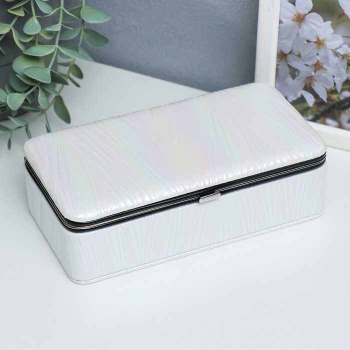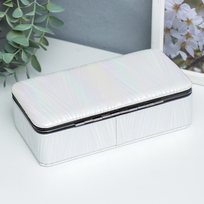 Шкатулка кожзам для украшений "Полосы.Текстура. Белые переливы" 6х9,8х18,5 см