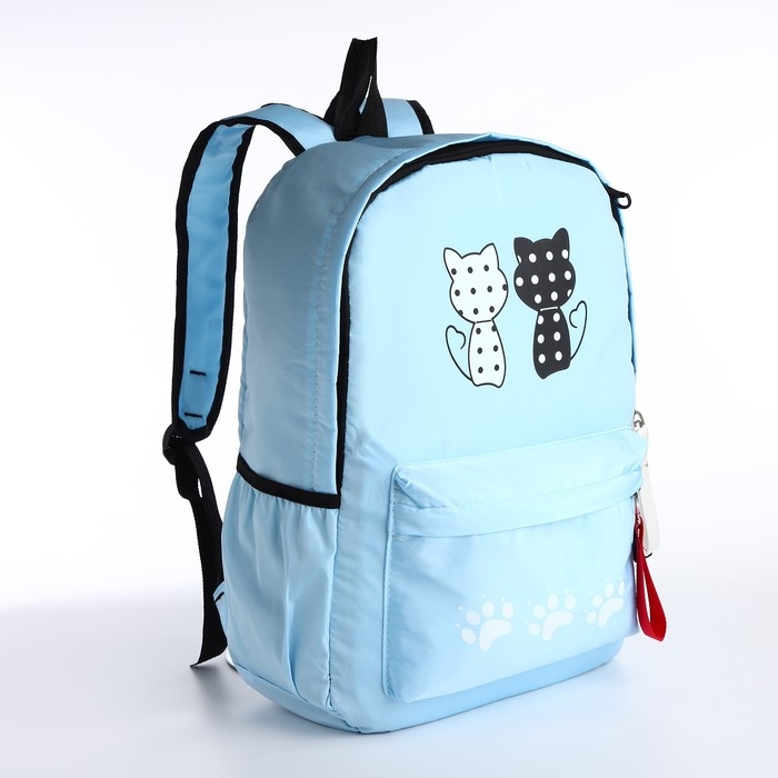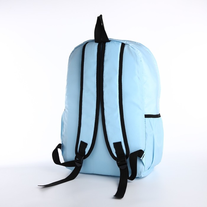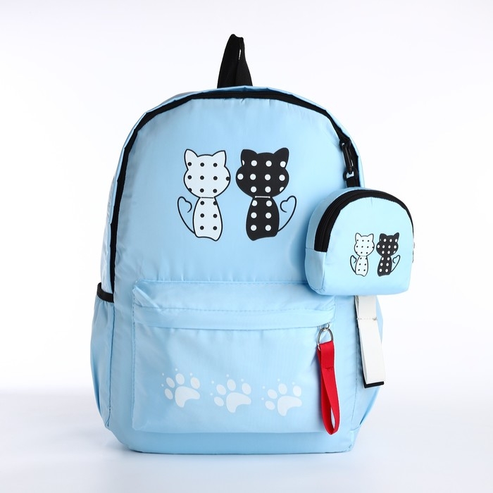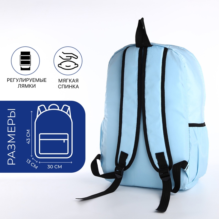 Рюкзак школьный из текстиля, 3 кармана, кошелёк, цвет голубой