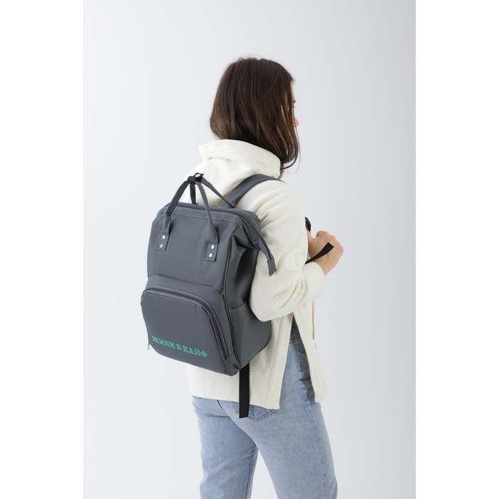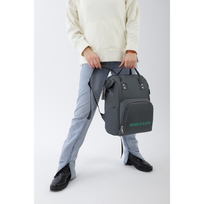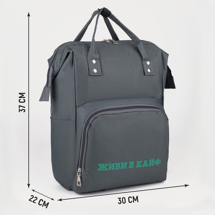 Рюкзак школьный текстильный «ЖИВИ В КАЙФ», с карманом, 25х13х38, серый
