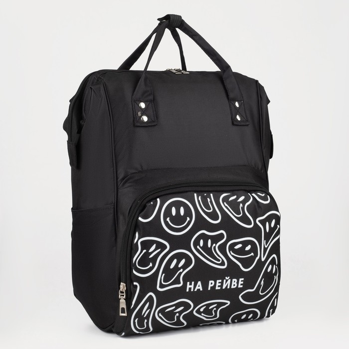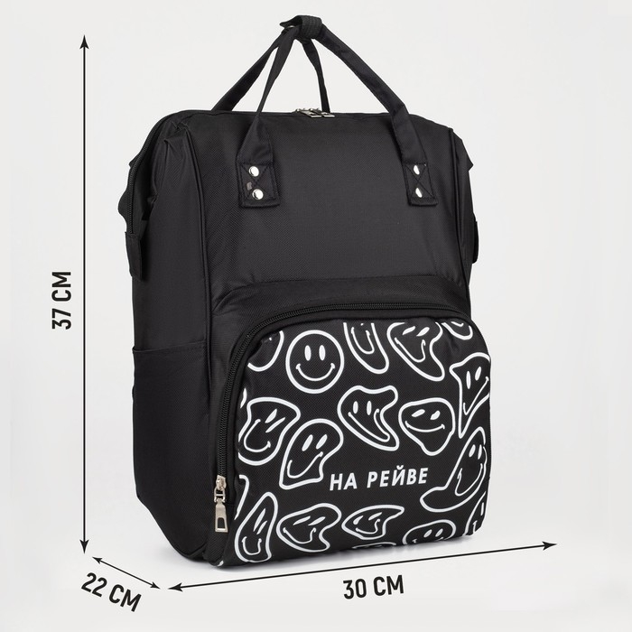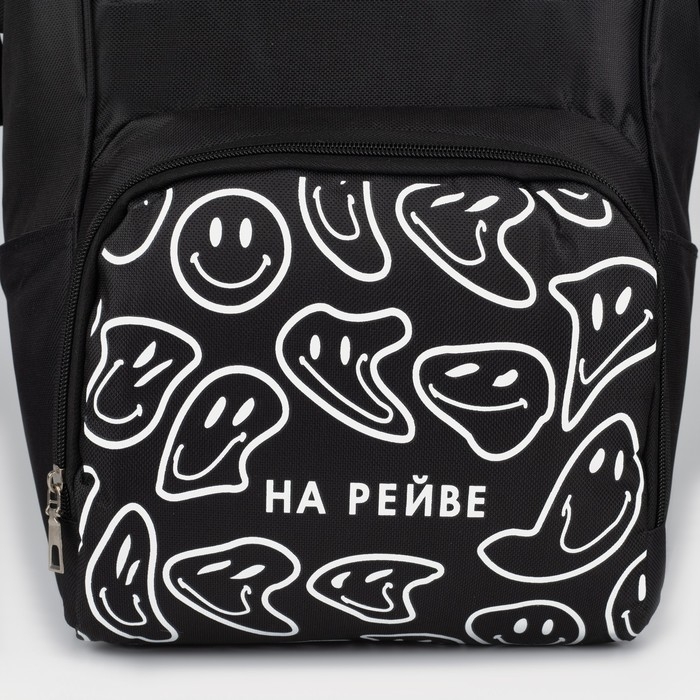 Рюкзак школьный текстильный «НА РЕЙВЕ», с карманом, 25х13х38, чёрный