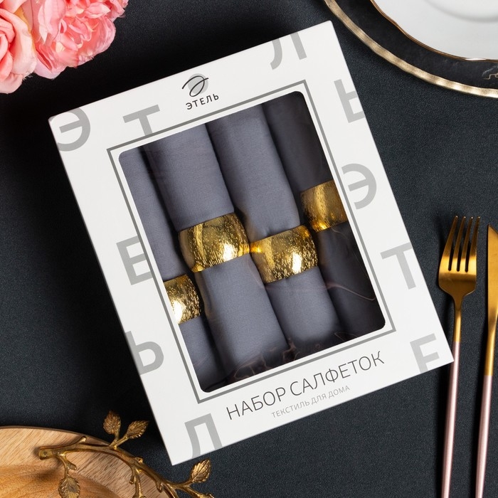 Набор салфеток с декорат. кольцами "Grey pleasure" 40х40 см - 4 шт, 100% хл, саржа 190гр/м2