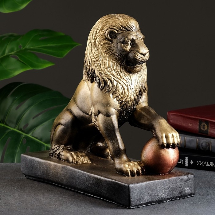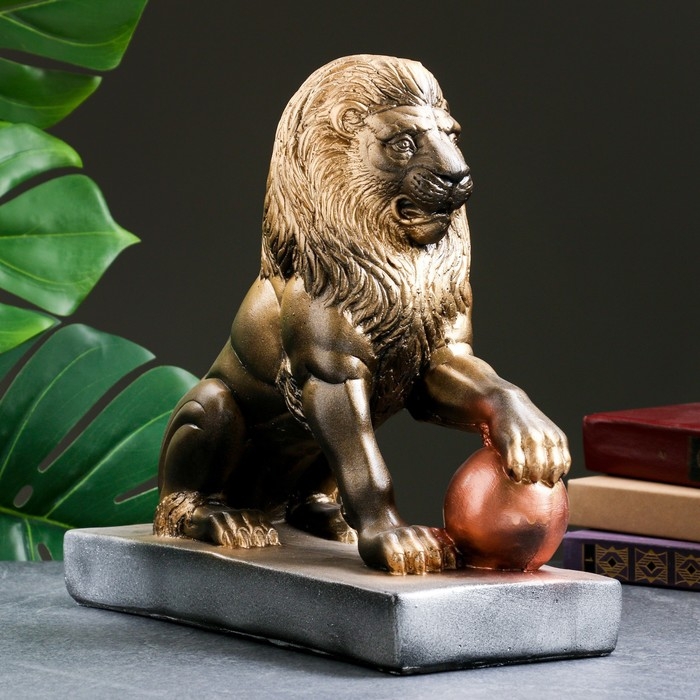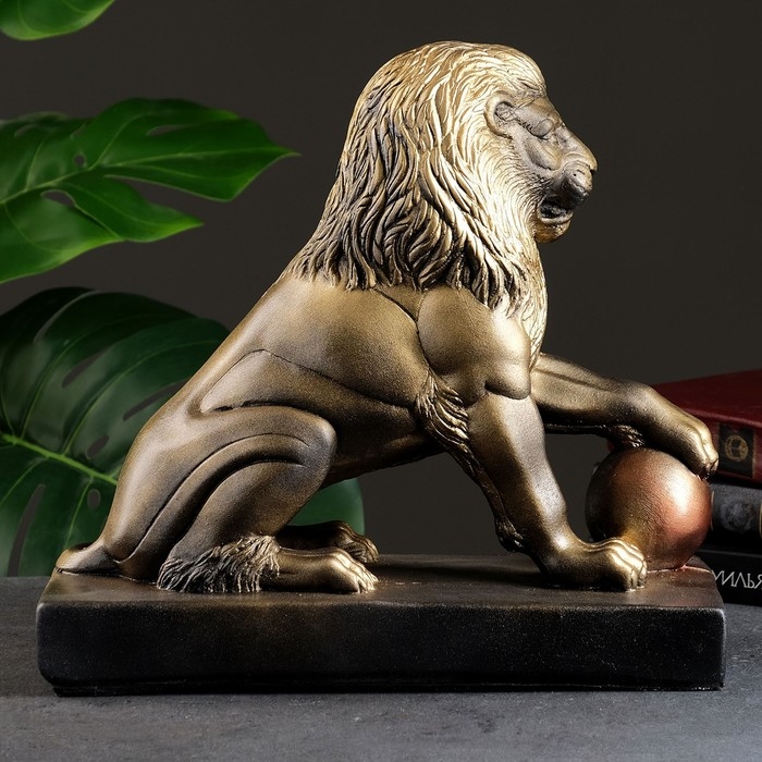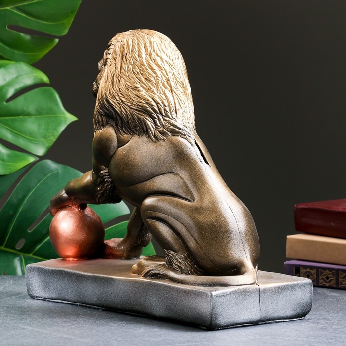 Копилка "Лев с шаром" черно-золотой, 32х15х35см