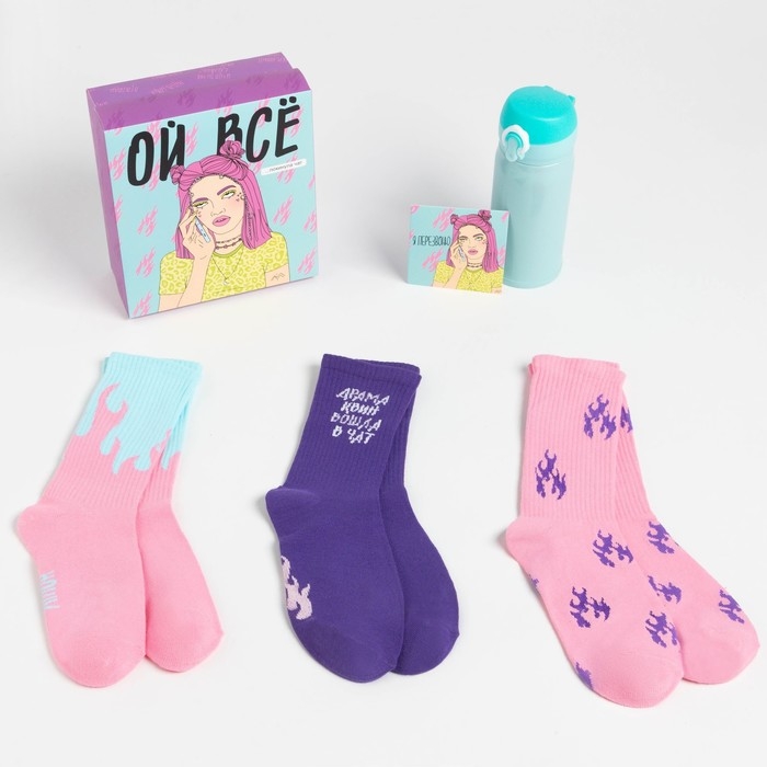 Подарочный набор термос и носки 3 пары KAFTAN "Ой все", размер 36-39 (23-25 см)