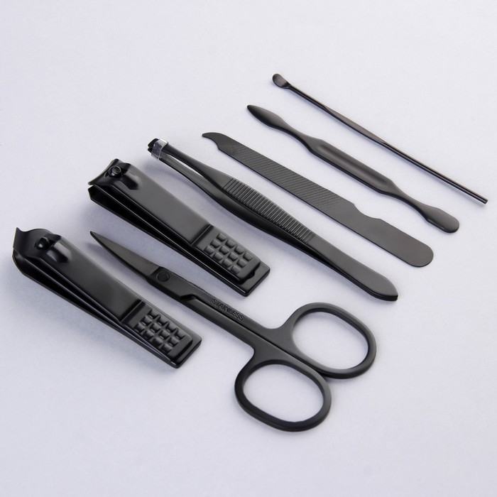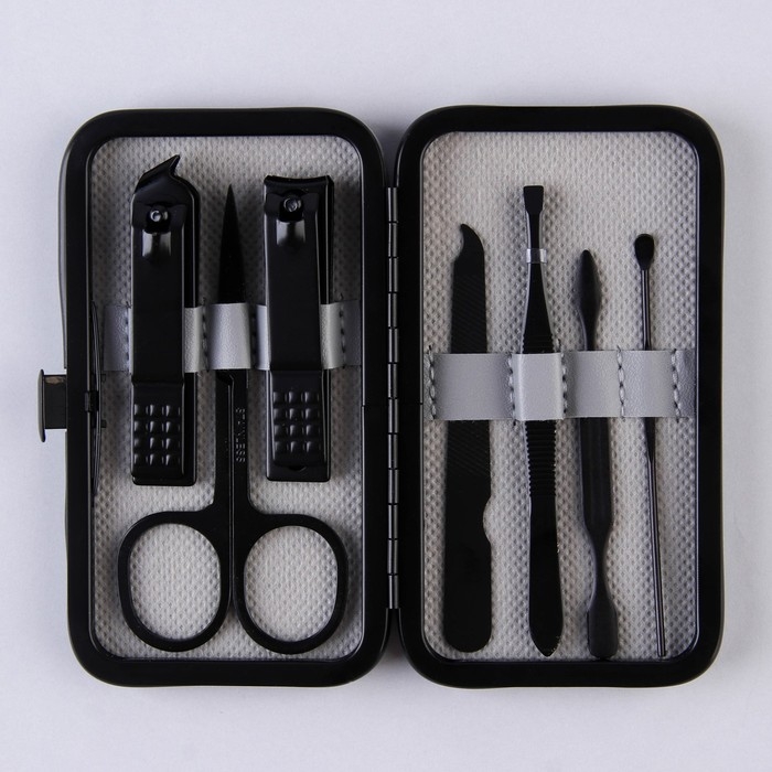 Набор маникюрный, 7 предметов, в футляре, цвет чёрный