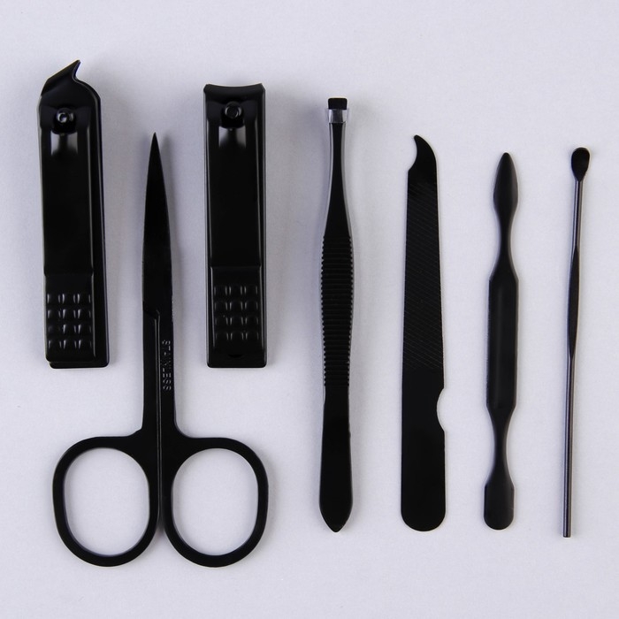Набор маникюрный «Black», 8 предметов, в футляре, цвет чёрный