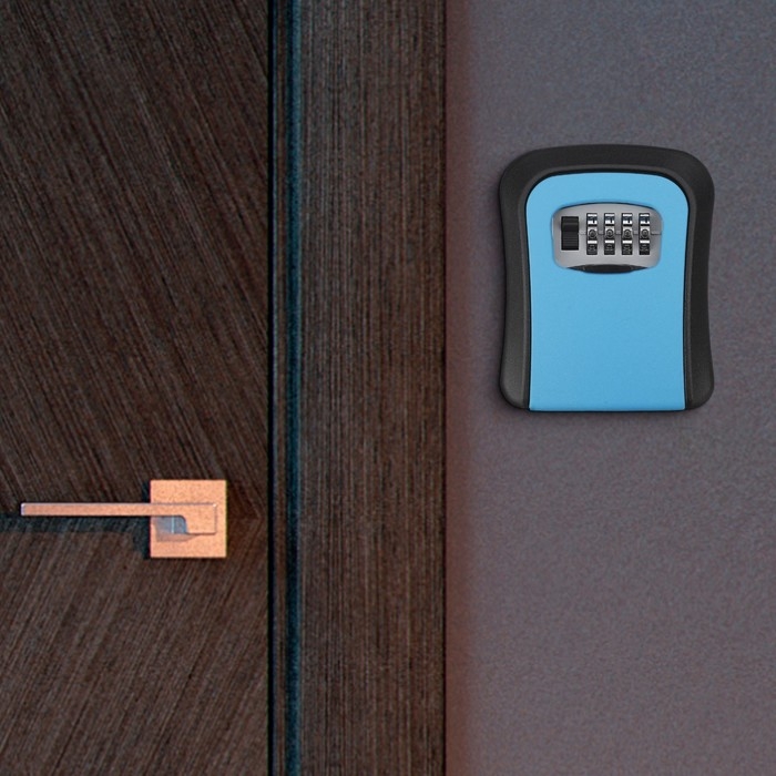 Ключница с кодовым замком, размер 12х9,6х4 см , цвет синий