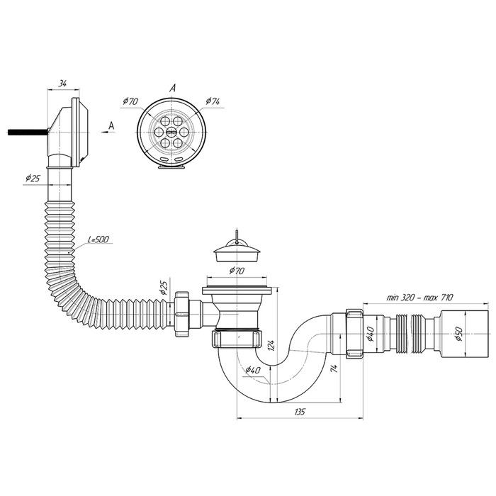 Комплект для ванны "АНИ Пласт" C6155: сифон, гибкая труба 40 х 50 мм