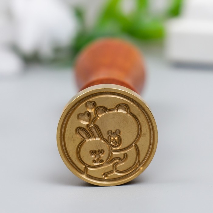Печать для сургуча с деревянной ручкой "Обнимашки - медведь и зайчик" 9х2,5х2,5 см