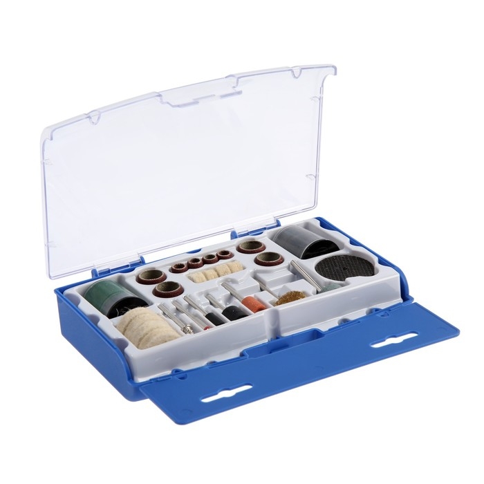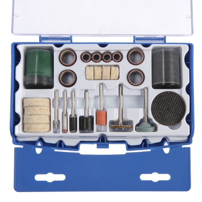Набор мини-насадок для гравера ТУНДРА, круги, щетки, шарошки, диски, паста, 3.2 мм, 64 шт.