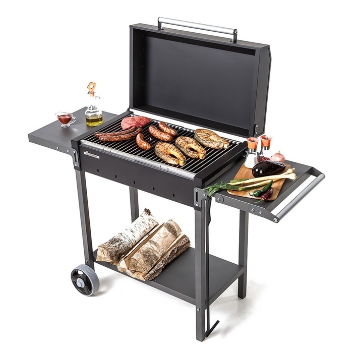 Мангал "MAH 203" 128,5 х 52 х 90,1 см, 2 мм, колеса, боковые полки, крышка