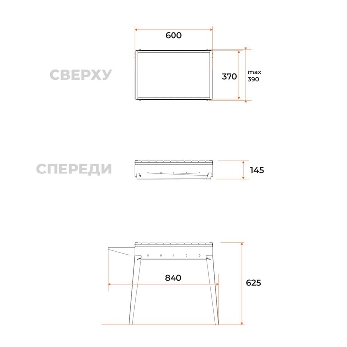 Мангал "Классика 600" 84,6 х 38 х 60,7 см, 2 мм, складные ножки, боковая полка