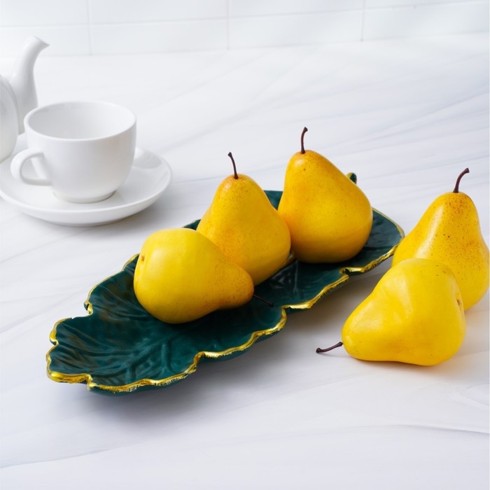 Блюдо для фруктов Доляна «Золотой лист», 37×14 см, цвет зелёный