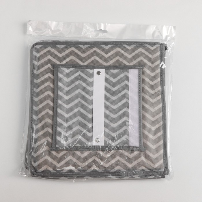 Короб стеллажный для хранения с крышкой Доляна «Ромбы», 30×28×15 см, цвет серый