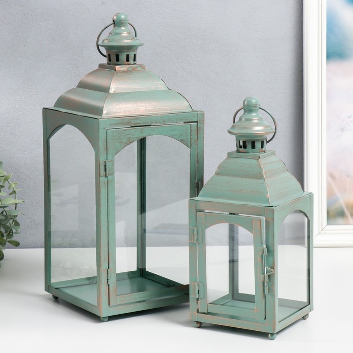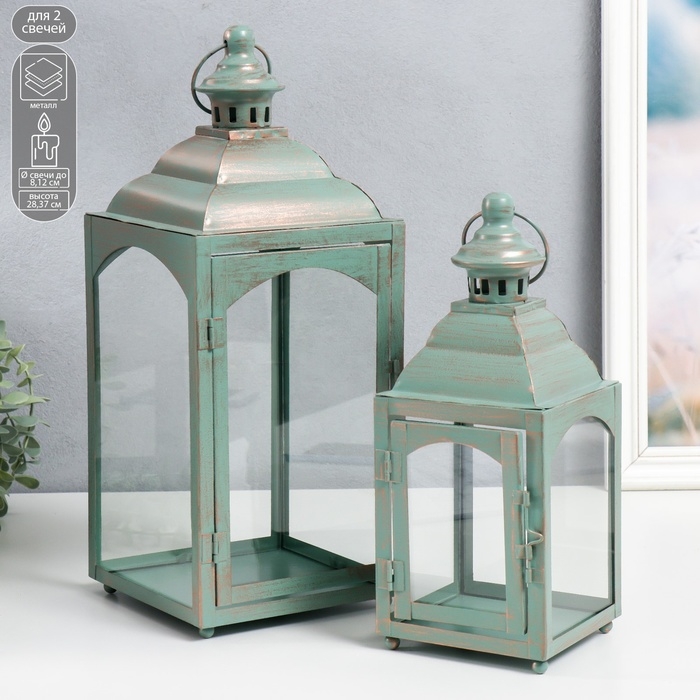 Подсвечник металл "Фонарь - ретро" 14х14х37,5, 11х11х28 см