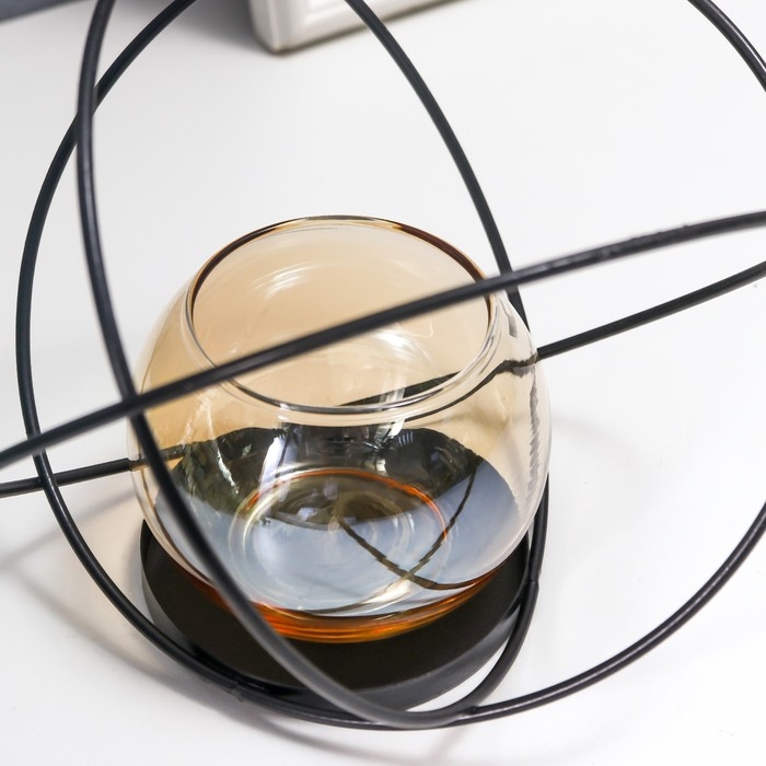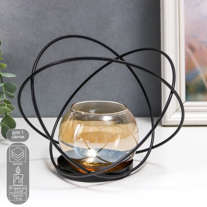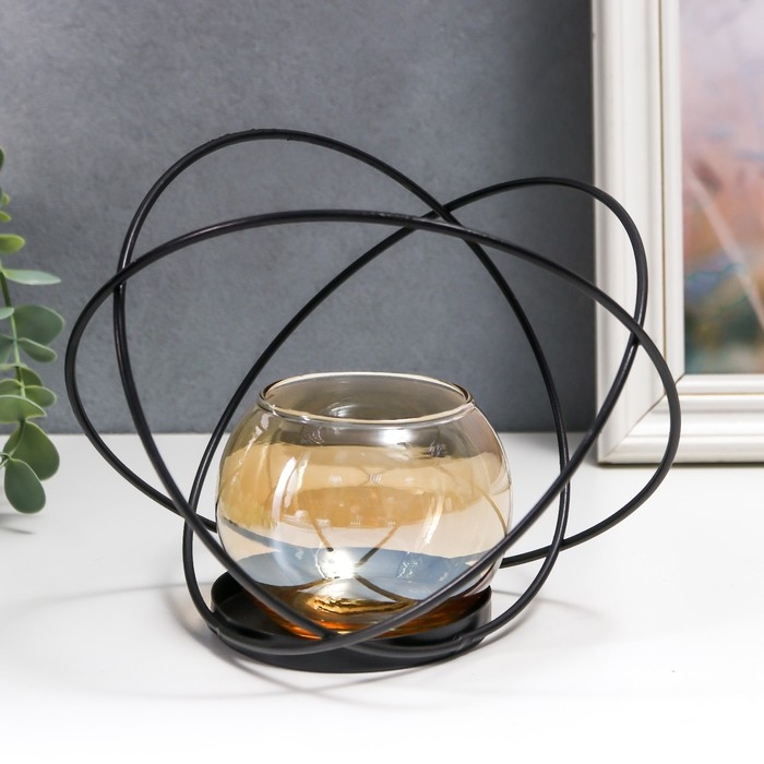 Подсвечник металл, стекло на 1 свечу "Лофт. Сплетение колец" чёрный 14х17,5х11,5 см