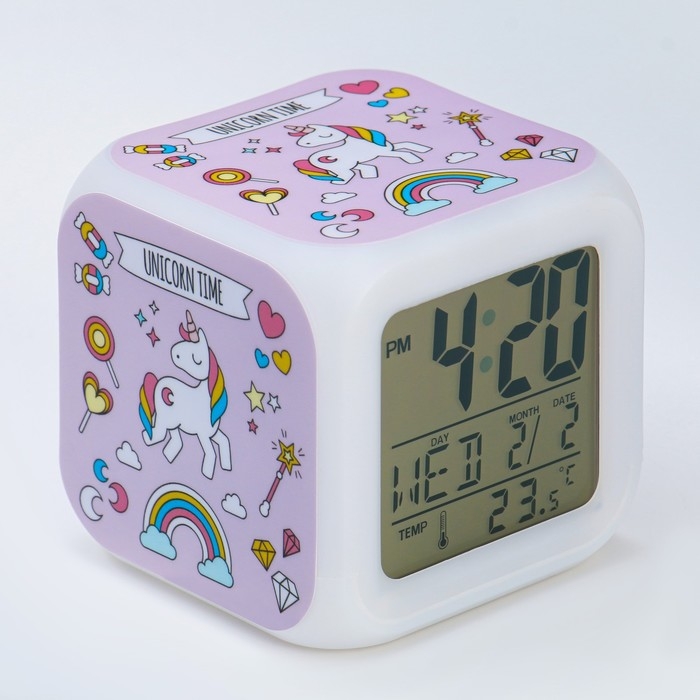 Часы - будильник электронные детские "Единорог" настольные, с подсветкой, 8 х 8 см, ААА