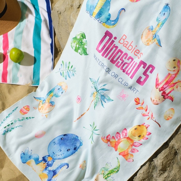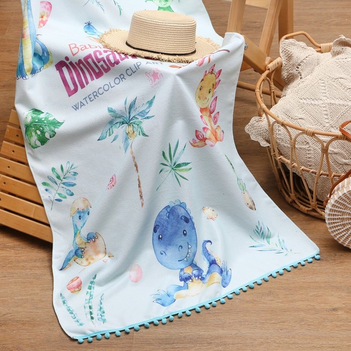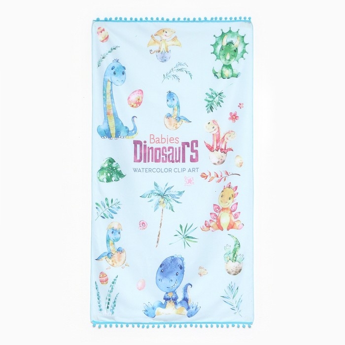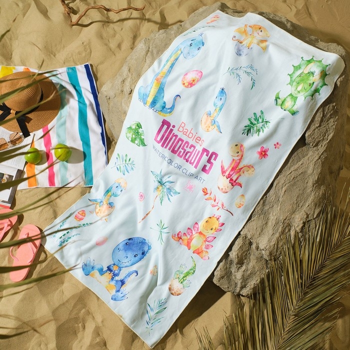 Полотенце пляжное Этель "Динозаврики" 75*140 см, микрофибра, 100% п/э, 230 гр/м2