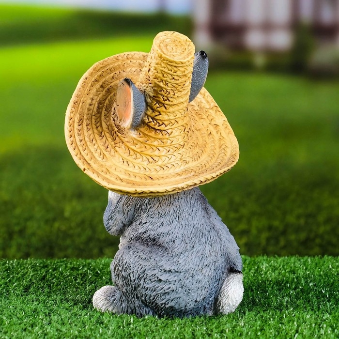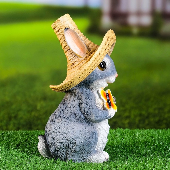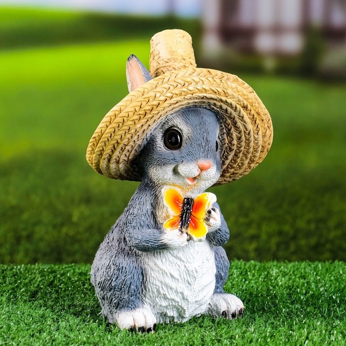 Садовая фигура "Зайка в соломенной шляпе с бабочкой" 12x13x22см