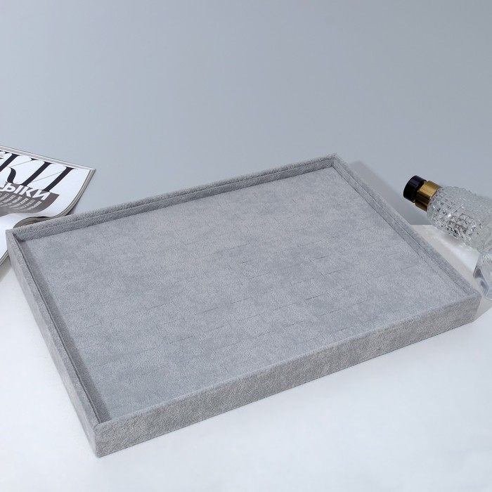 Подставка под кольца 100 мест, флок, 35×24×3 см, цвет серый