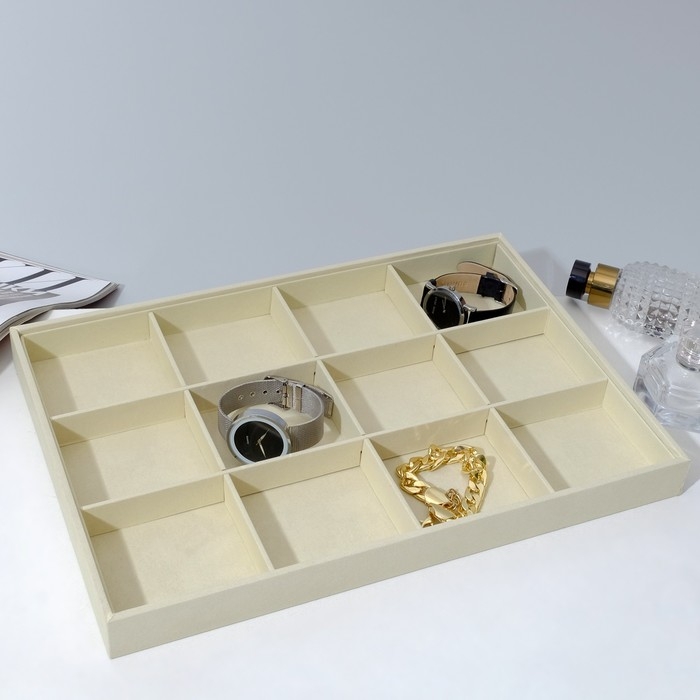 Подставка для украшений 12 ячеек, флок, 35×24×3, цвет бежевый