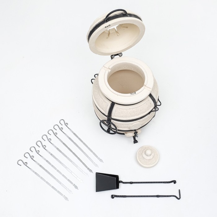 Тандыр "Донской" с откидной крышкой, h-67 см, d-42, 52,5 кг, 8 шампуров, кочерга, совок