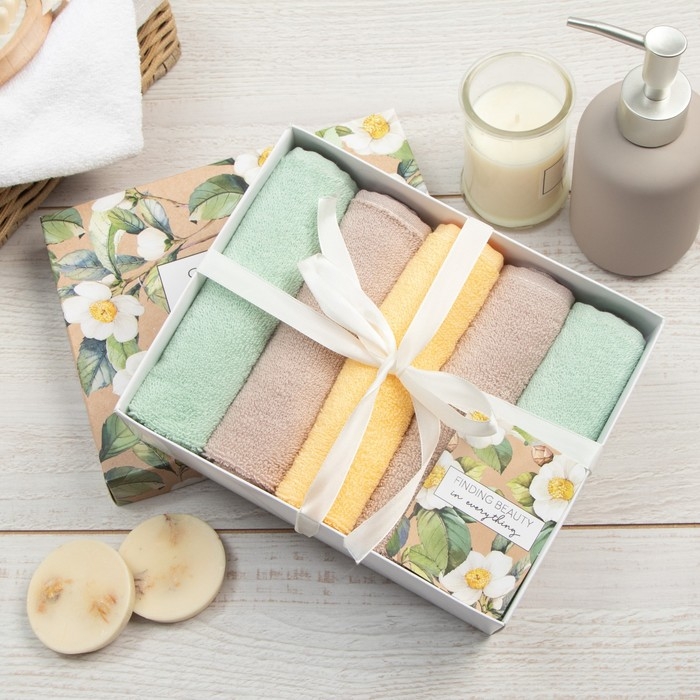 Набор махровых полотенец Этель Summer time 30х30 см -5шт, 100% хлопок 340 гр/м2