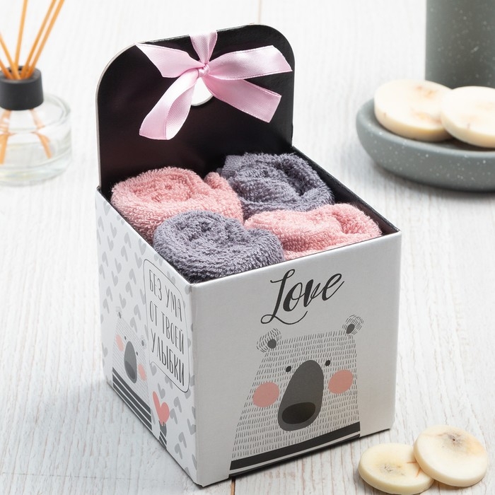 Набор махровых полотенец Этель Love 30х30 см-4шт, 100% хлопок 340 гр/м2