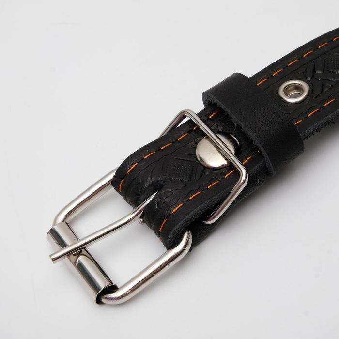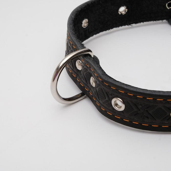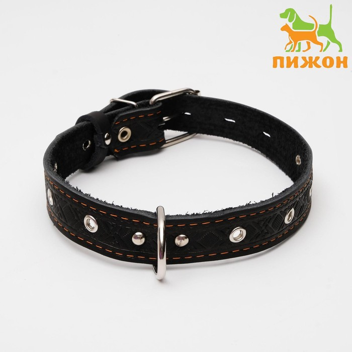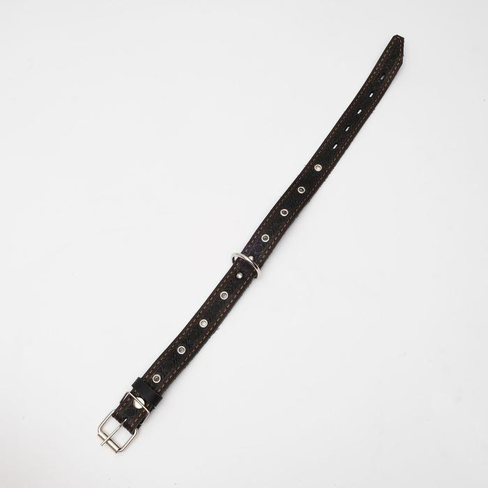 Ошейник кожаный тисненый однослойный, безразмерный, 3 х 60 см, ОШ 42-55 см, микс цветов