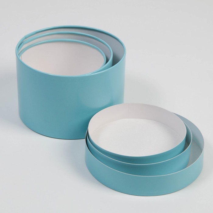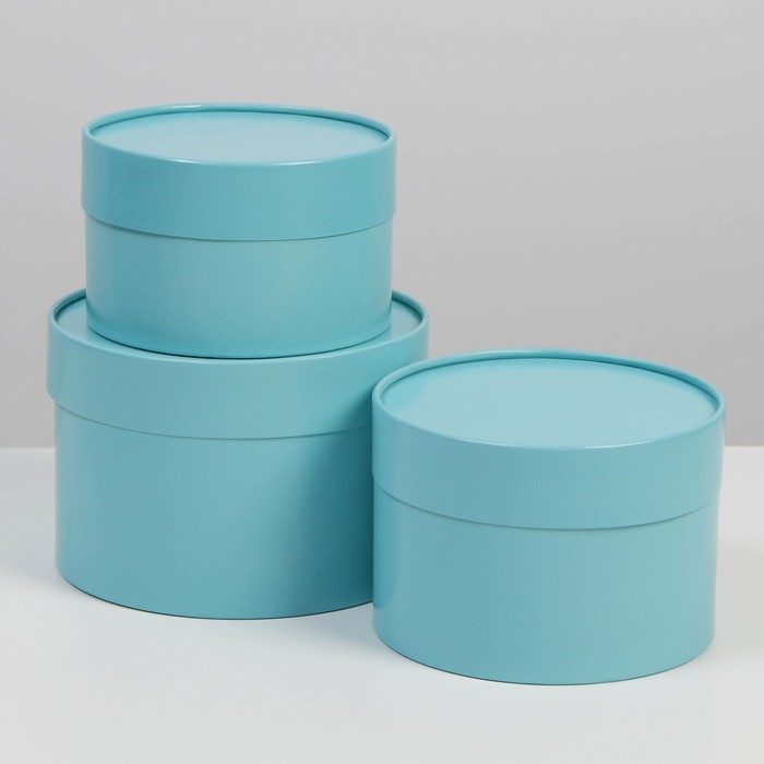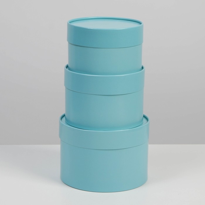 Набор шляпных коробок 3 в 1 голубой, упаковка подарочная, 16 х 10, 14 х 9, 13 х 8,5 см