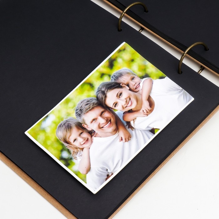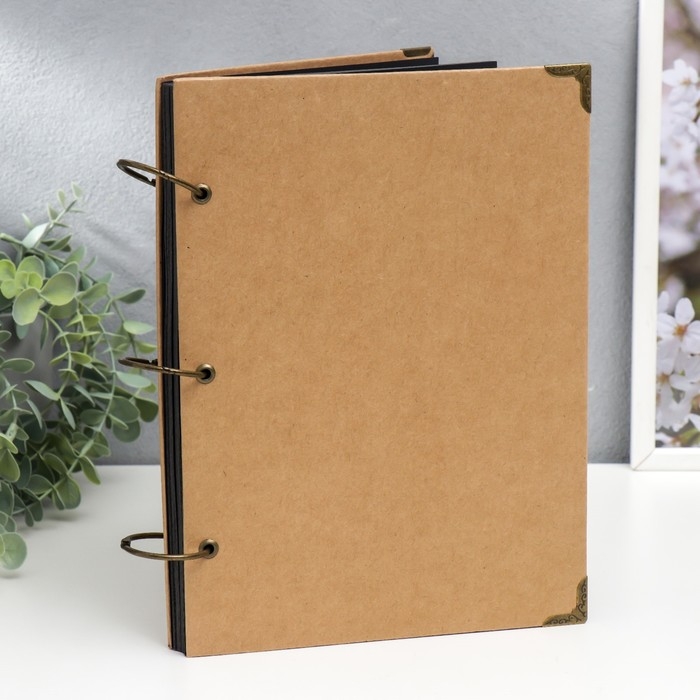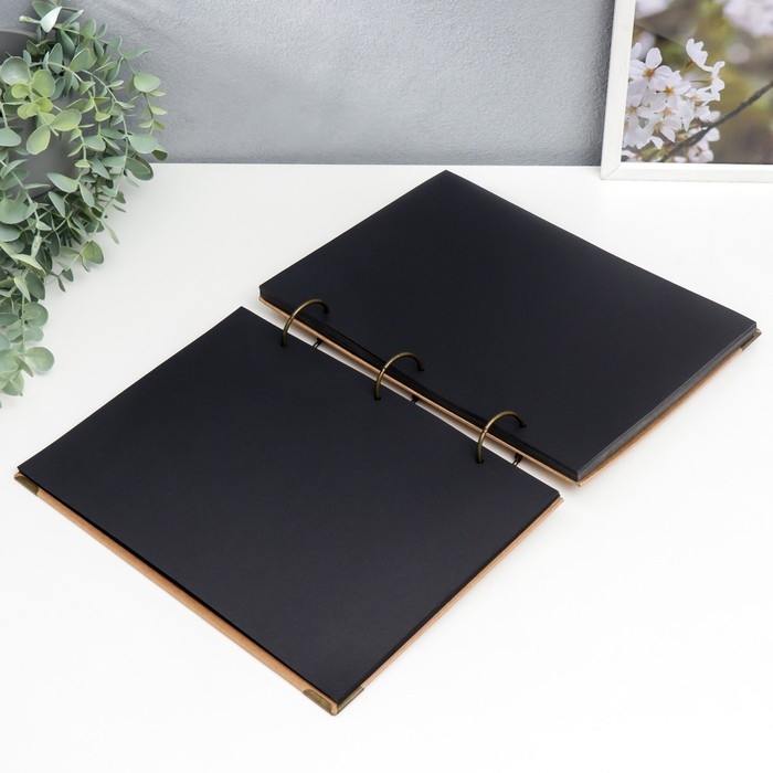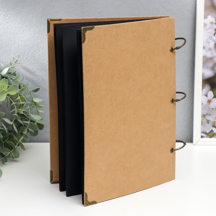 Фотоальбом 30 чёрных листов "Крафт" на кольцах, большой, плотность 350 гр 21х28,5 см